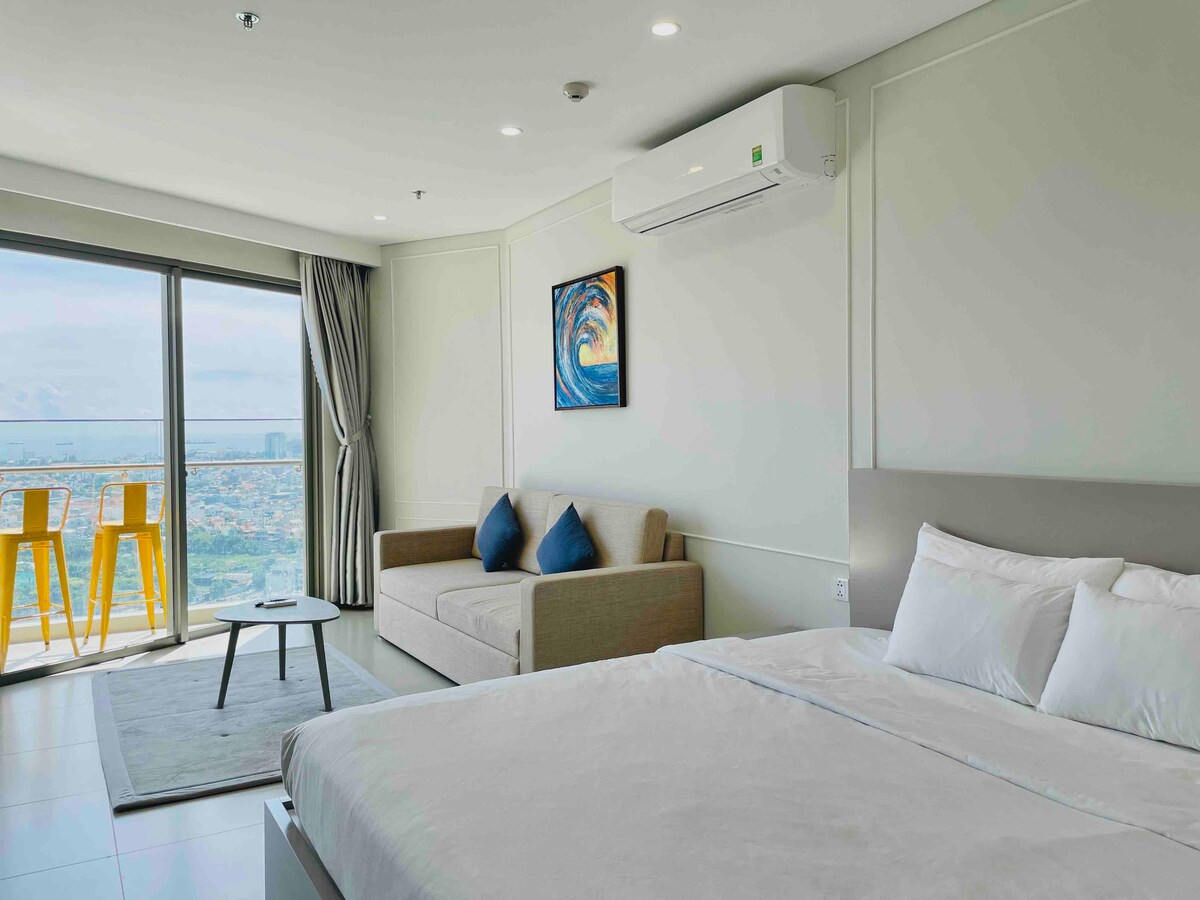Minimalistisch, volledig ingericht 1BR appartement op de 15e verdieping met een spectaculair uitzicht op zee. Ideaal voor stellen of gezinnen met één kind jonger dan 5 jaar. Perfect gelegen naast het Back-strand (Thuю Vân strand). Geschatte looptijden naar nabijgelegen voorzieningen: - 2 minuten naar het strand aan de overzijde van de straat - 5 minuten naar de dichtstbijzijnde 24/7 supermarkt (GS25) - 8 minuten naar de dichtstbijzijnde supermarkt (Lotte Mart) Snelle liften, gratis Netflix. We hebben ook een motorfiets te huur.