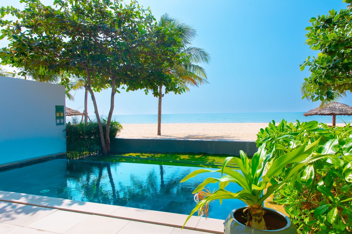 Dit is een PRIVÉZWEMBAD AAN HET STRAND VILLA 4 BR+ 4 badkamers, behoort tot de fase 2 van het Sanctuary Ho Tram resort. - Oppervlakte: 492m2 -4 tweepersoonskamers (inclusief 3 tweepersoonskamers met balkon met en geschikte badkamer + 1 slaapkamer met tweepersoonsbed beneden met behulp van de badkamer buiten de kamer). - Accommodatie 8 volwassenen + 4 kinderen onder 11 jaar.o -Enormaal zonneterras voor entertainment - Rustige, tropische aangelegde tuinen - volledig uitgeruste keuken -Privézwembad - overdekte parkeergelegenheid