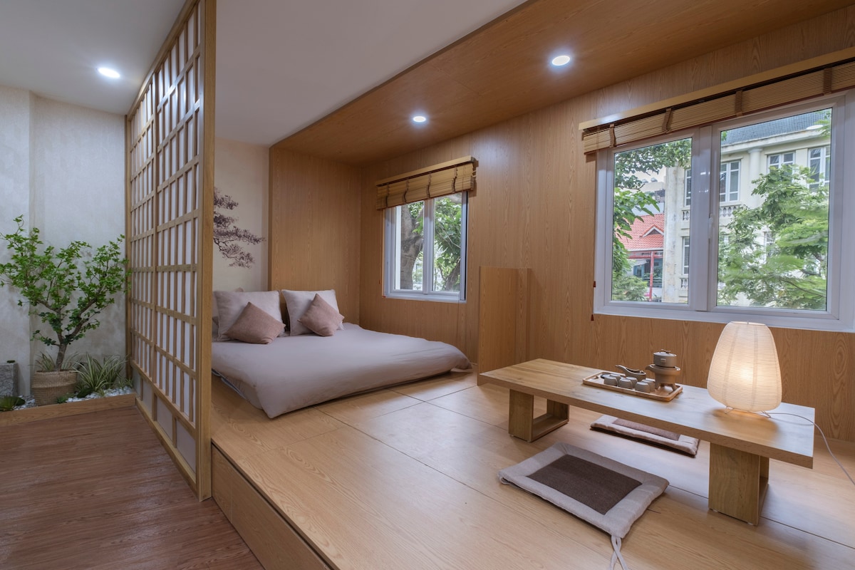Our homestay located in a quiet, characteristic alley of Hanoi, surrounded by friendly and hospitable neighbors. The house is decorated in a warm, gentle style that reflects the lifestyle of Vietnamese people. Large windows flood the space with natural light, and hanging greenery creates a fresh and pleasant atmosphere. Green Air in the Old Quarter is a cozy, peaceful retreat after a busy day exploring Hanoi.