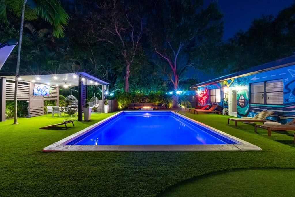 🎶 House of Music Miami – Wonen in resortstijl 🎶 🎤 Officiële #Airbnb100-accommodatie! 🎤 Bij Beyond The BNB bieden we niet alleen een verblijf, we creëren onvergetelijke ervaringen. Deze villa met muziekthema is ontworpen voor groepen die graag contact maken, feesten en blijvende herinneringen maken. 🛌 Slaapplaatsen 16+ | 🔥 Verwarmd zwembad, jacuzzi, BBQ & vuurplaats 🎶 Privénachtclub met karaoke, darts, Guitar Hero en discolichten 🏀 Basketbal, pingpong en minigolf 🚗 Minuten tot stranden, nachtleven en hotspots in Miami @BeyondTheBNB