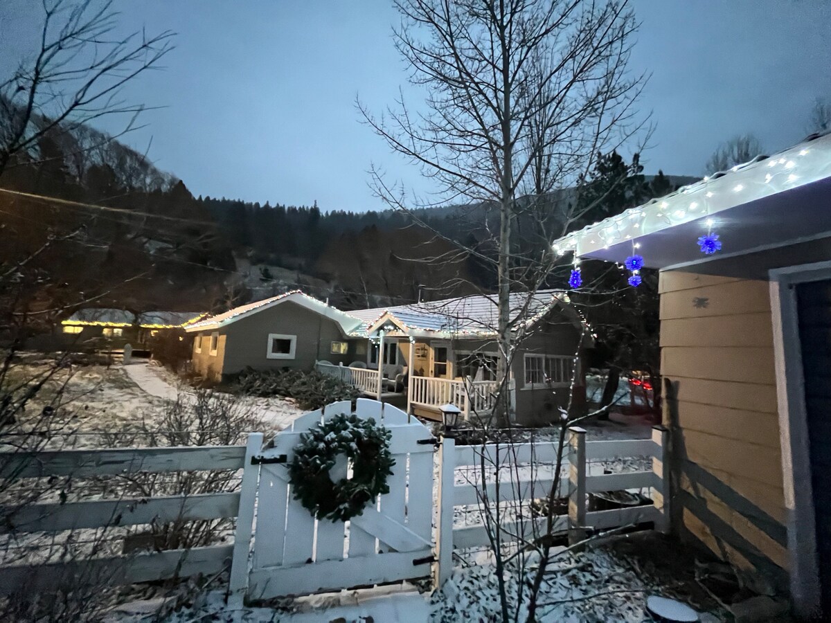 Welkom in @ thebighornchalet- een beek aan de voorkant, modern A-frame. Op een volledige 750 vierkante meter geniet je van de reguliere luxe van een full-size woning zonder in te boeten op comfort! Geniet van het bubbelbad, de stoomsauna, de vuurplaats en de picknickplaats naast Trout Creek, die door het hele terrein loopt. Gelegen op slechts een paar kilometer van zowel Canyon Ferry Lake als Hauser Lake kun je genieten van het buitenleven. Of ga naar Helena, MT op slechts 20 mijl om te genieten van alles wat de stad te bieden heeft.