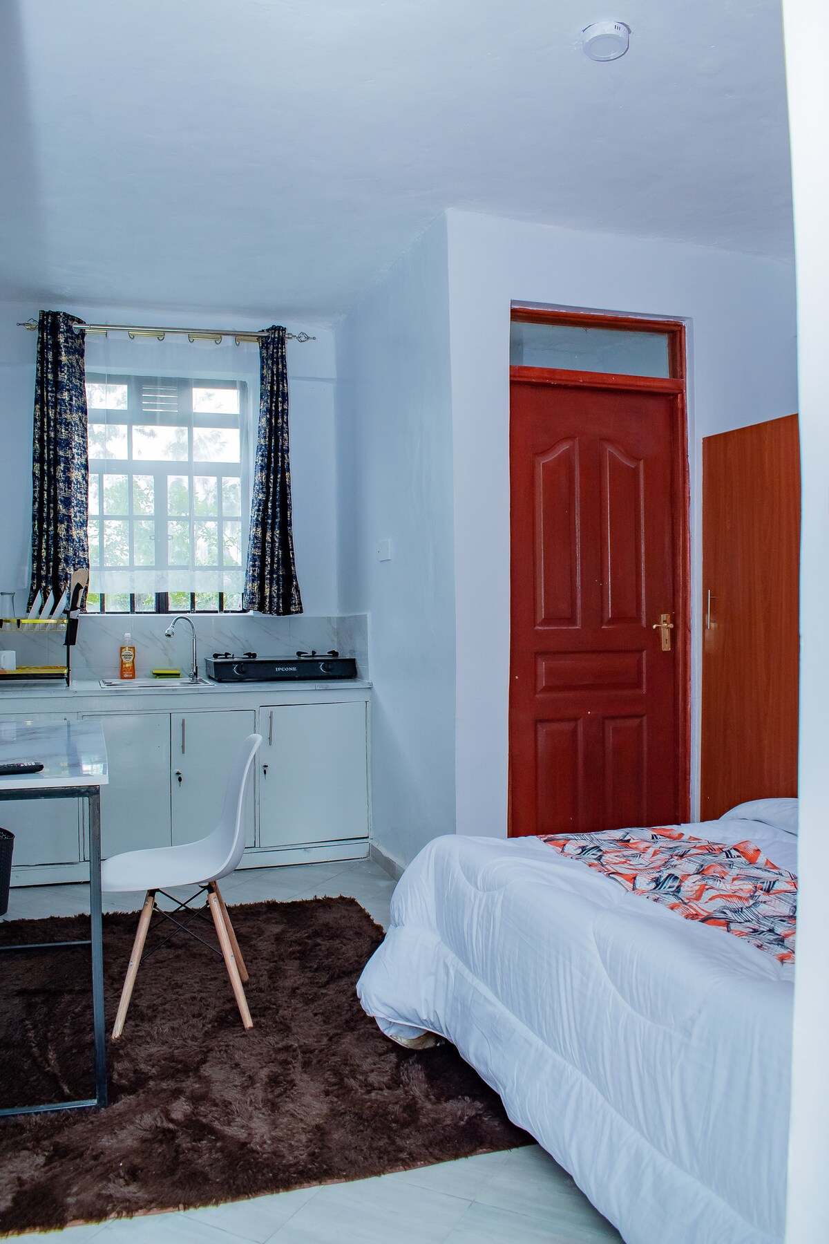 Kom logeren in onze privé, rustige en eenvoudige woning is gelegen op de hellingen van Mbita Hills. De woning is perfect voor een groep reizende vrienden of een gezin dat op zoek is naar een rustig verblijf. Het beschikt over 4 bedden, woonkamer (slaapbank), 2 badkamers en 1 grote gezinskeuken. Reservegenerator beschikbaar
