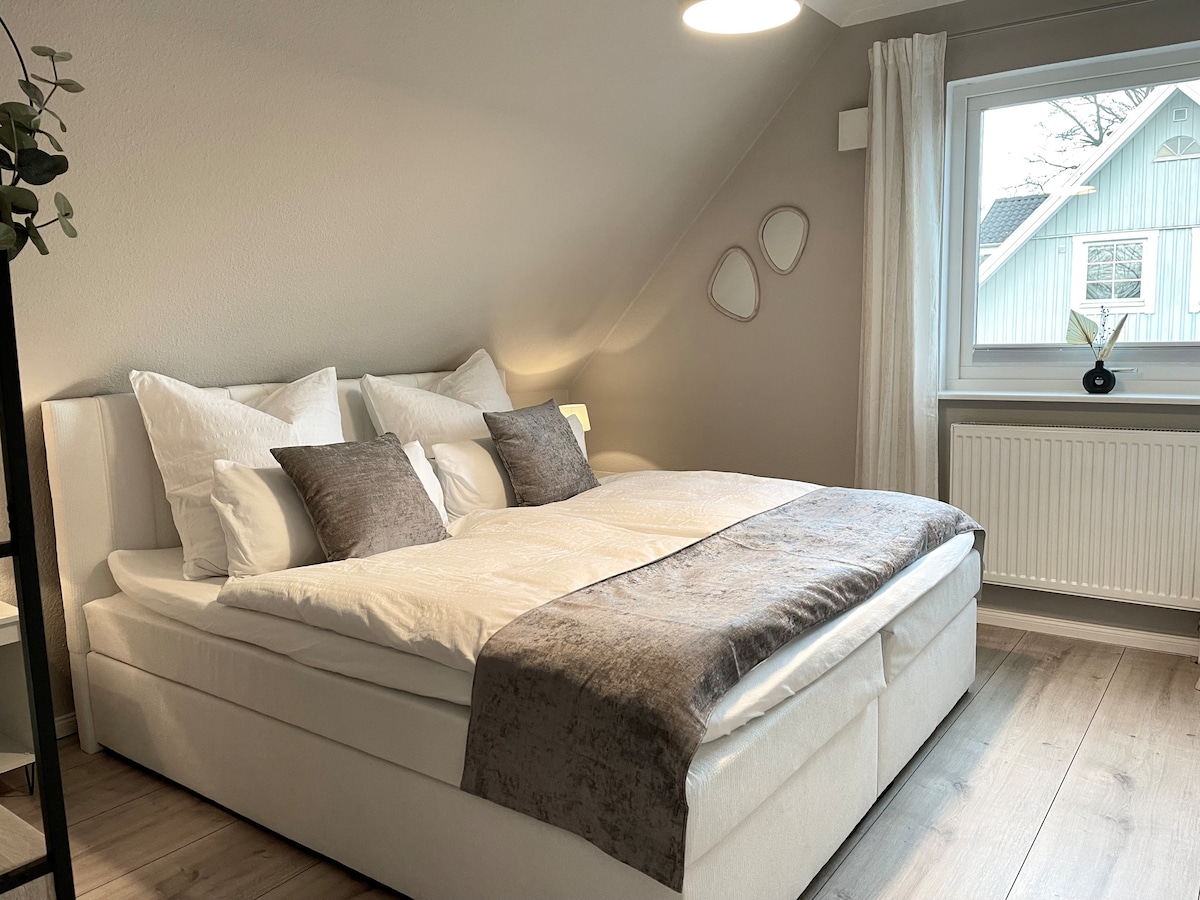 Moin! Wir bieten unsere Anliegerwohnung als Privatunterkunft zur Vermietung an. Sie hat einen eigenen Eingang, Küche, Duschbad und Wohn- / Schlafzimmer. Sie ist über eine Innentreppe mit unserem Haus verbunden. Oben ist aber eine Tür welche verschlossen ist. Die Unterkunft hat einen separaten Eingang, wir ermöglichen dir eine zeitlich flexible Schlüsselübergabe. Handtücher, Bettwäsche, WLAN, Wasserkocher, Geschirrspüler, Kamin und Terrasse vorhanden. Kostenloser Parkplatz auf dem Grundstück.