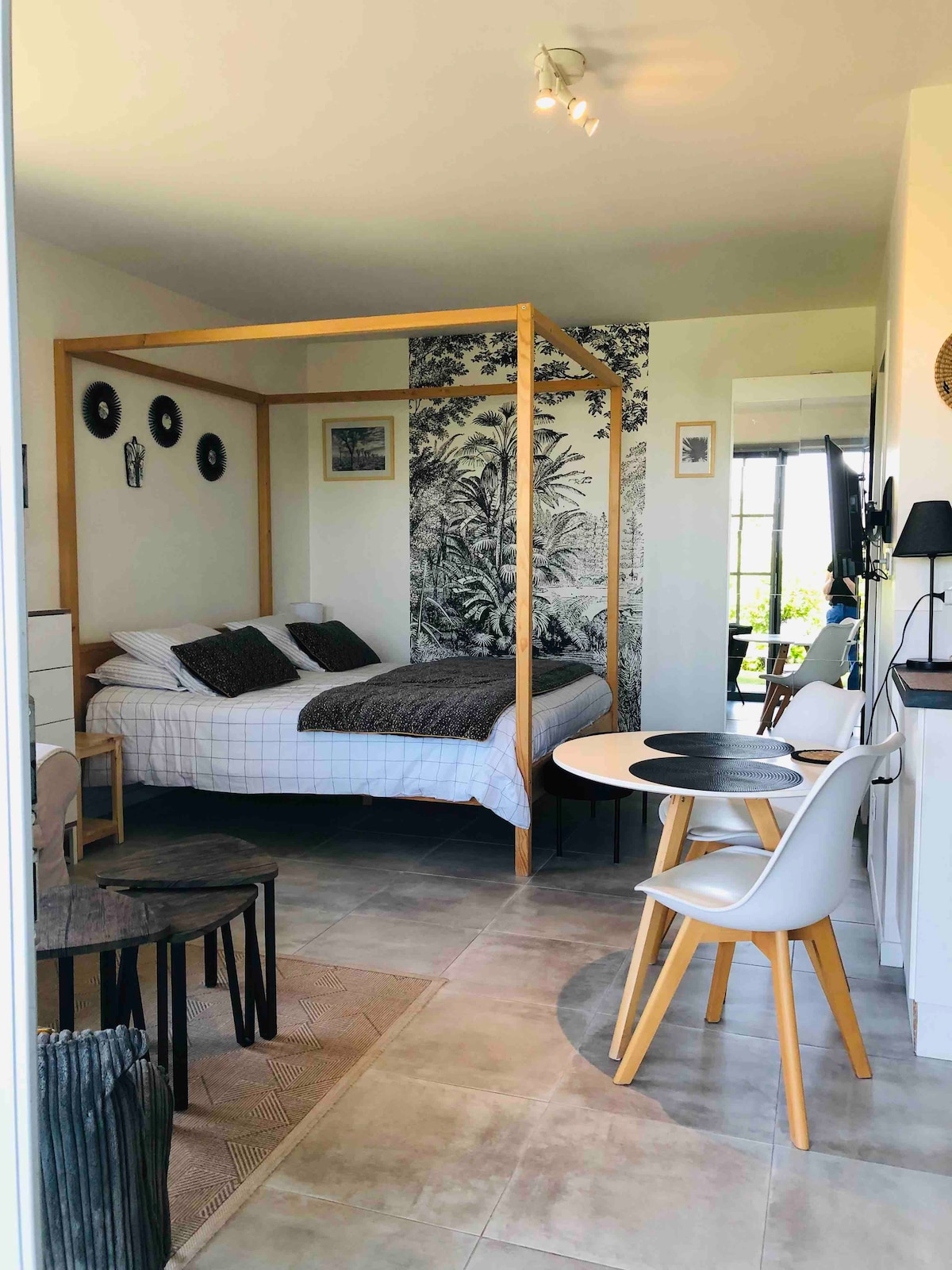38 m ² terrein & tuin, parkeerplaats. WiFi BEDDENGOED AANWEZIG, OPGEMAAKT BED, koffie, thee en basics. Ideaal voor koppels. Het huisje is volledig onafhankelijk in het huis van de eigenaar. Normandisch huis in vakwerk en steen. Gelegen in een dorp op de hoogten van Honfleur op 4,5 km van het stadscentrum en op 15 km van Deauville (snelweg op 1 km afstand) Eigen toegang met oprit voor je auto en poort. De tuin is uitgerust met een tafel en stoelen, een fauteuil en een paraplu. Brood (supermarkt) op 300m