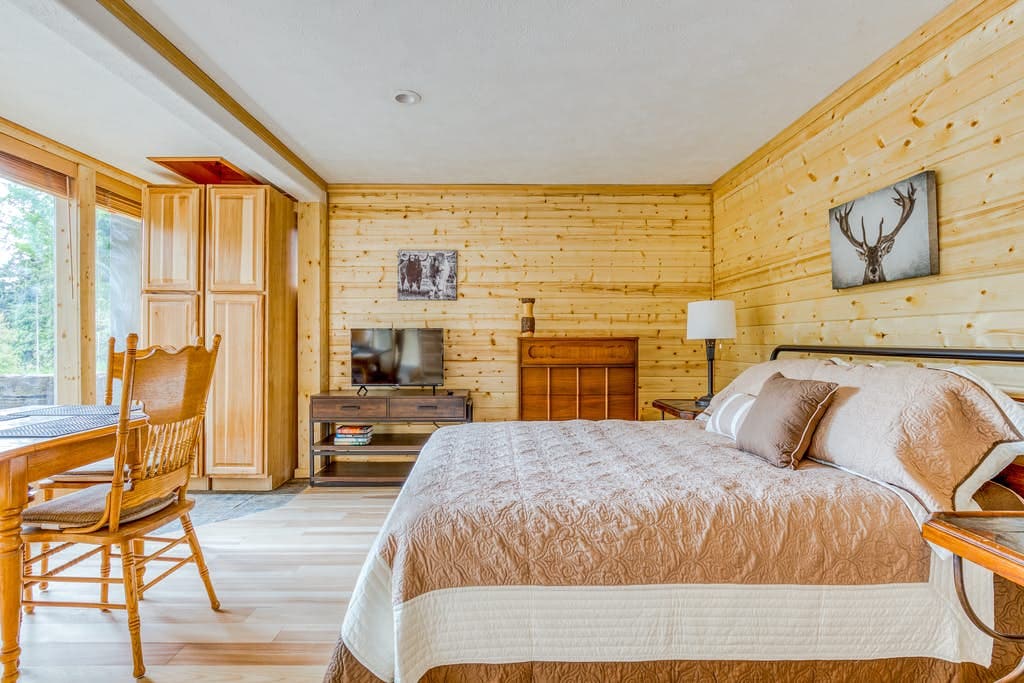 Whether you're here to play, relax, work or all of the above, our Boho Master Suiet will provide comfy amenities you'll love : → Yoga Mat and Foam Roller → Games for all ages → High Speed Internet → Organic Keurig Coffee, Hot Chocolate and Tea → Delicious Snacks → Microwave, Mini Fridge and Water Dispenser w/ hot water → Extra bathroom products for women and children including diapers → First Aid Kit inc. Tick remover *Please note that we require all guests sign our custom rental agreement. S