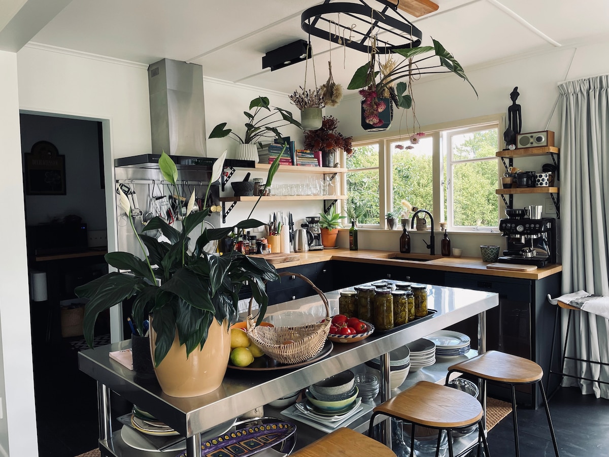 Het oude, delen met het nieuwe, een oude verweerde leren stoel naast prachtige eigentijdse lampen. Het houtvuur, er is iets met een vuur dat je lichaam en je ziel verwarmt, een warmtepomp ook. Mooie inheemse houten vloeren. Kwaliteitslinnen, 100% biologische katoenen lakens. Het huis: op een schiereiland, dicht bij de kade, deze oase ligt dicht bij restaurants, cafés, galeries, fish and chips ook. Centraal gelegen bij Abel Tasman National Park-fietspaden, wijngaarden, kunstgalerijen.