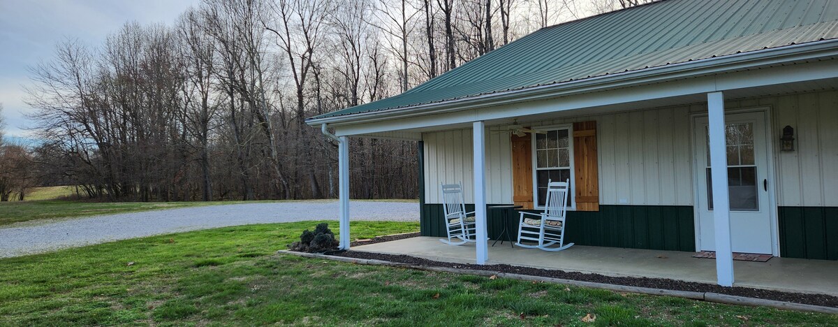 Kom met het hele gezin tot rust in dit vredige huis met 2 slaapkamers en 2 badkamers met prachtig uitzicht op het meer. Mama Jean's Cottage ligt aan een doodlopende weg in een rustige buurt. Voldoende parkeergelegenheid, rolstoelhelling en overdekte parkeergelegenheid beschikbaar. Het huis heeft een prachtig uitzicht op een 20 hectare, semi-privé meer. Er zijn zithoeken buiten, een aanlegsteiger en een vuurplaats. Het dok wordt gedeeld met een andere Airbnb-accommodatie. Het is een gemakkelijke rit naar restaurants, parken en alles wat het schilderachtige westelijke Kentucky te bieden heeft.