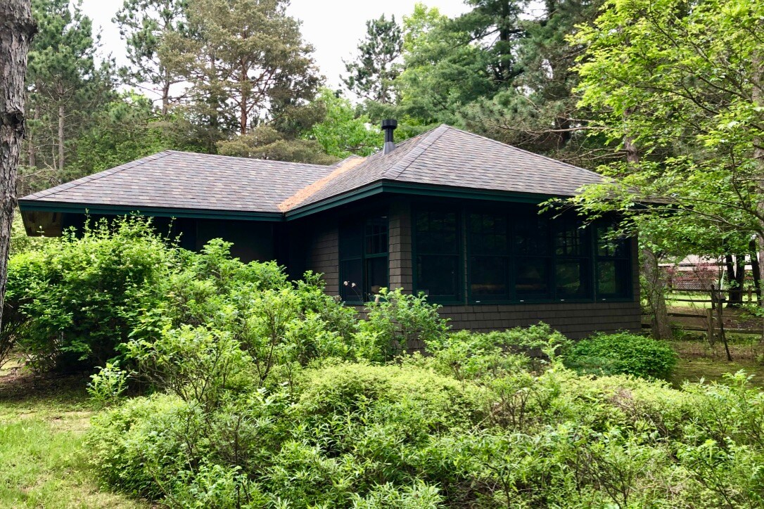 Houten huisje aan het meer bij Little Wolf Pond