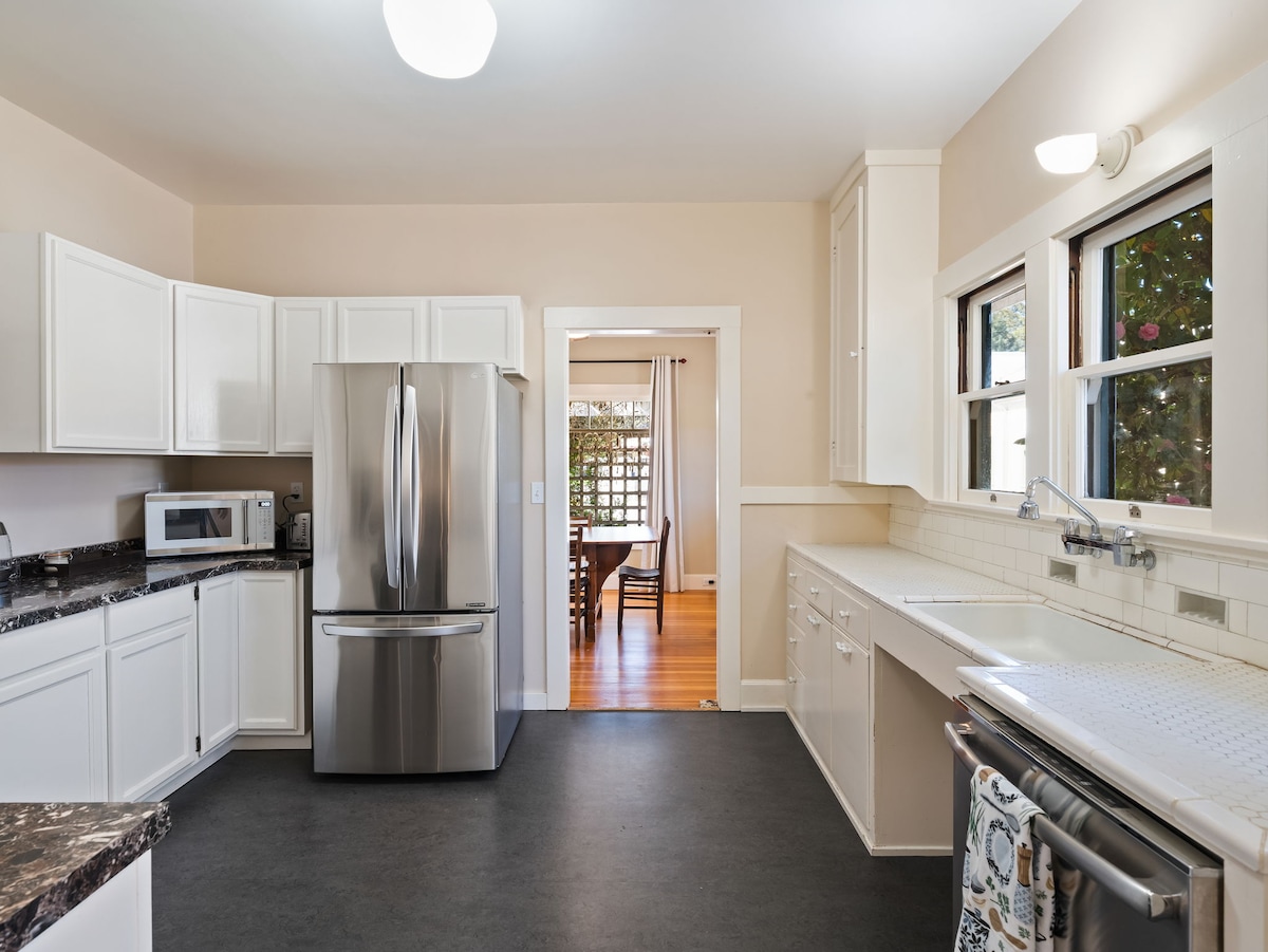 Houd het simpel op deze rustige en centraal gelegen plek. Onze 100+ jaar oude vakantiewoning heeft een klassieke vintage sfeer met onlangs gerenoveerde moderne accenten. Het appartement boven beschikt over twee slaapkamers en een badkamer. Het ligt op slechts een half blok van het centrum van Cloverdale, waar je in de zomer restaurants, bars, winkels en livemuziek vindt. Dit is de perfecte plek om te genieten van een gezinsvakantie of een uitje voor vrienden!