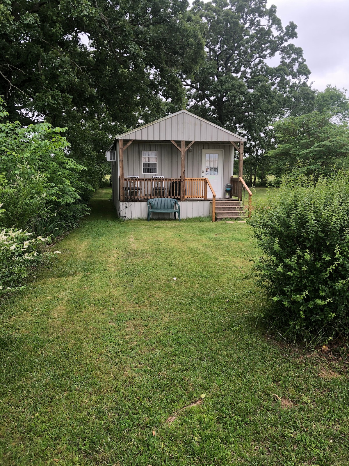 Our small cozy cabin, newly built in 2021, is stocked with all the essentials you'll need for your home away from home. We offer 1 bedroom and 1 loft, a fully equipped kitchen, free wifi, washer and dryer, a peaceful front porch, and a TV with access to Netflix, Disney+, ESPN+, Hulu, and more. We offer the best of town and country -- we are located in city limits for quick access to shops and restaurants, and other than our personal residence on the property, there are no neighbors in sight.