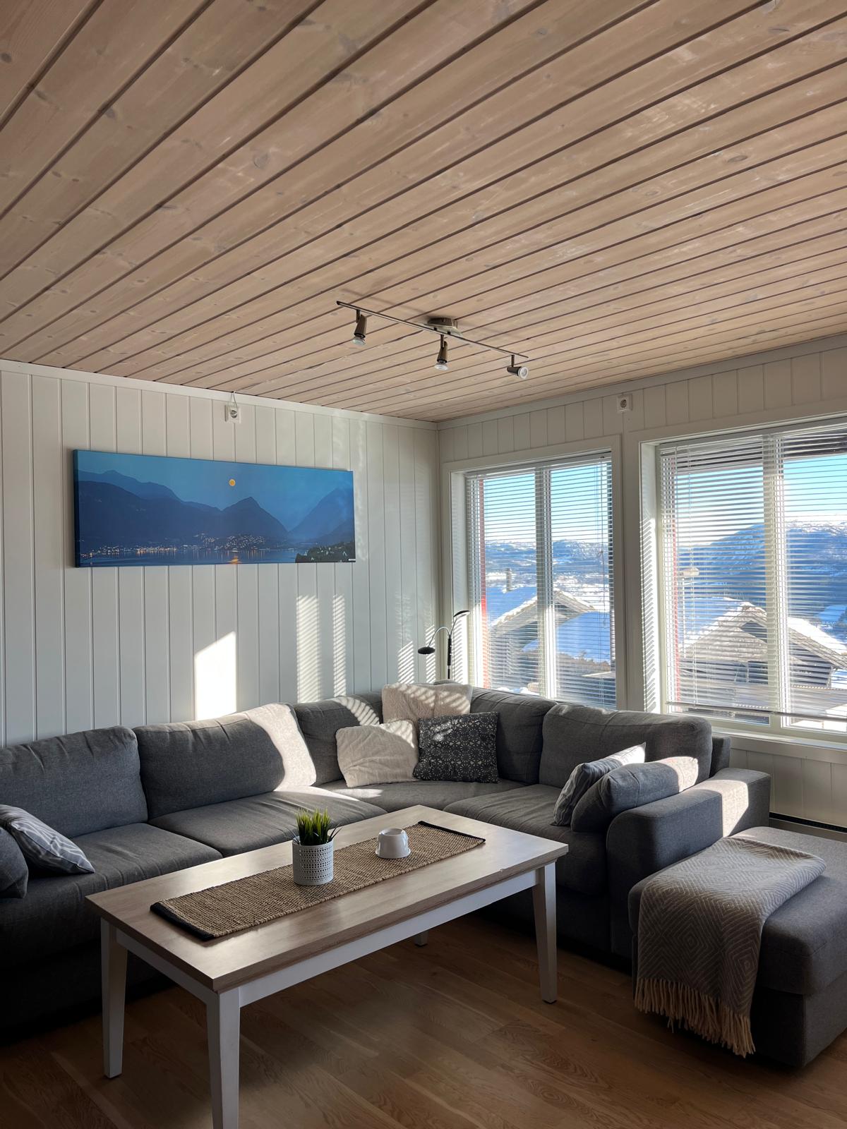 Ontspan met het hele gezin in deze rustige accommodatie. 40 minuten van de bergen. Geweldige tour- en vismogelijkheden. 5 minuten naar een supermarkt Het appartement is verdeeld over 3 verdiepingen en bevat: woonkamer keuken badkamer 2 slaapkamers gang wasruimte 2 slaapkamers met ruimte voor 3 mensen per kamer. Gratis wifi in het appartement. huur van linnengoed en handdoeken NOK 100,- per persoon Er is de mogelijkheid om een boot te huren. 14 voet open boot met 9,9 paarden, buitenboordmotor.