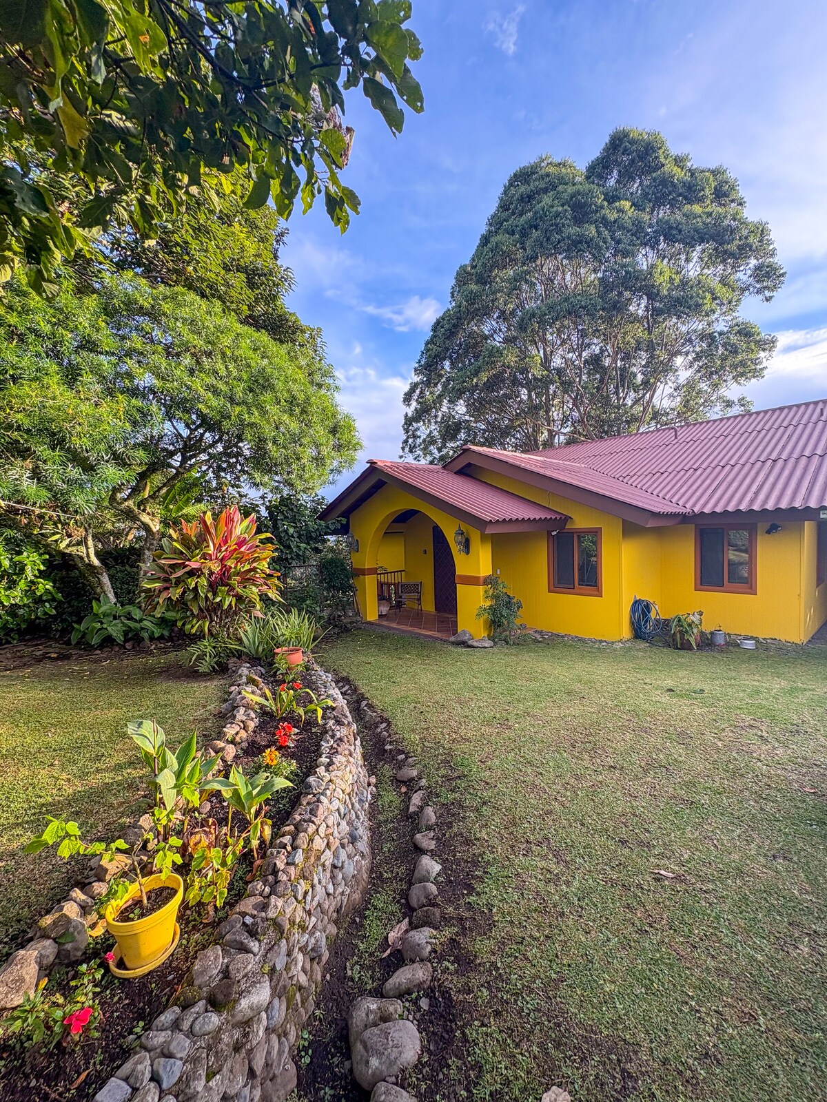 Sunshine Cottage is een klein huisje in de achtertuin van Finca Katrina. Het ligt op een heuvel met uitzicht op Palo Alto en Jaramillo met een koffieplantage op de voorgrond. Er is een volledig (tweepersoonsbed), ruimte om je kleding op te hangen en je spullen op te bergen. Je hebt een kleine koelkast, broodroosteroven, gootsteen, koffiezetapparaat en kastruimte voor voedsel, maar geen kookplaat. Als je op zoek bent naar meer slaapkamers, zijn er extra eenheden op Finca Katrina die Sunshine Cottage complimenteren. Stuur ons een opmerking!