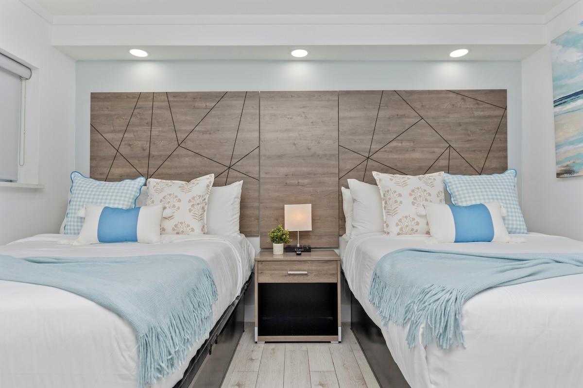 Welcome to the new Fin’s Inn— thoughtfully refreshed for comfort, ease, and relaxed beach living. Just steps from the sand and Boardwalk, this spacious 2-bedroom suite sleeps up to 8 and is ideal for families, couples or small groups. Enjoy upgraded bedding and linens, refreshed décor, and enhanced in-room amenities, plus a full kitchen, pool, and game lounge - all under new ownership and management with a renewed focus on cleanliness, safety, and responsive guest care for a better stay.