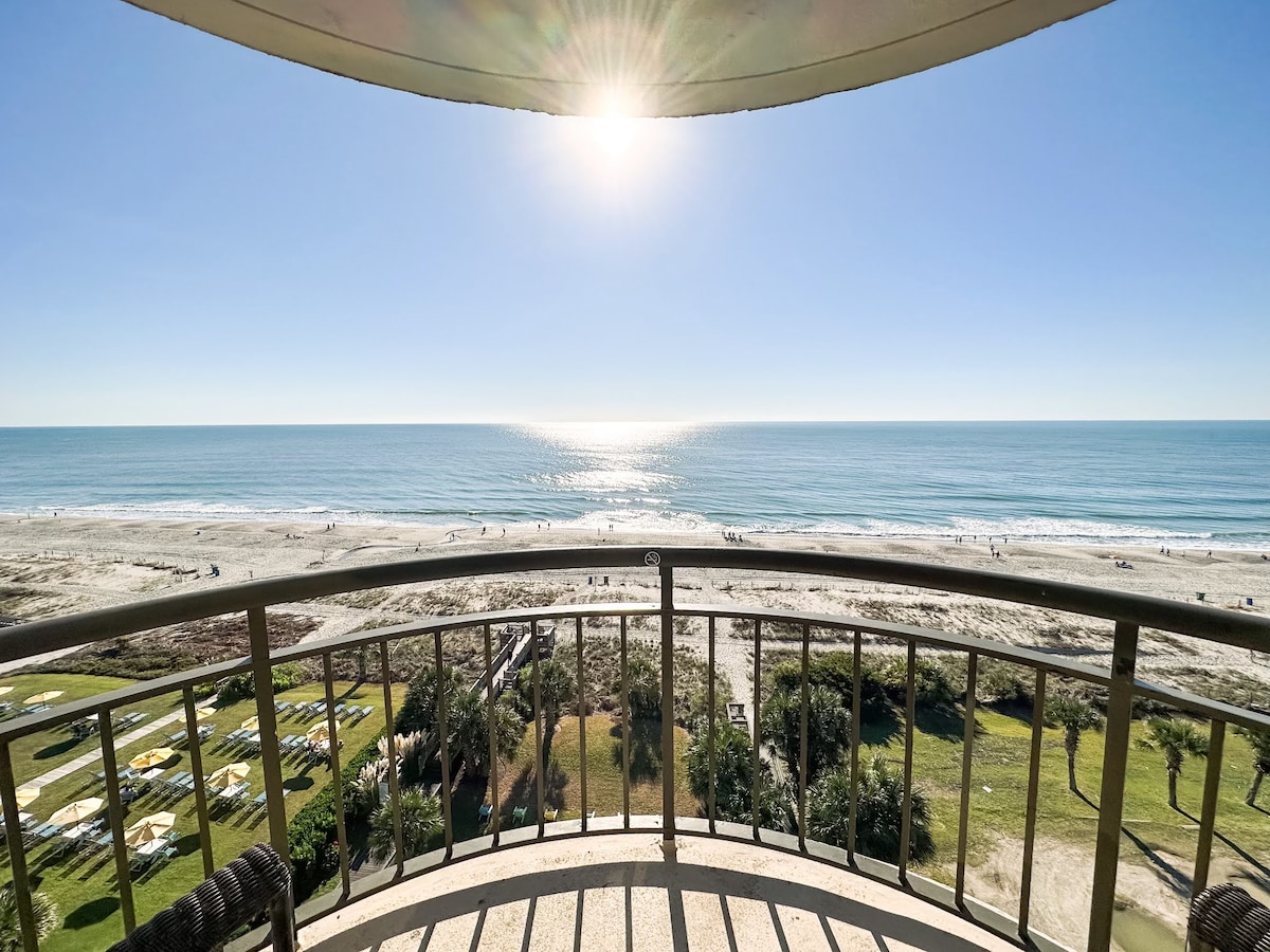 Trakteer jezelf op een ontspannen, verjongend verblijf in dit volledig gerenoveerde appartement aan de oceaan. Geniet van moderne afwerkingen, waaronder kwarts aanrechtbladen, shaker-kasten, roestvrijstalen apparaten, bijgewerkte badkamer en stijlvol meubilair. Deze eenheid op de 9e verdieping biedt prachtige zonsopgangen, verwarmde binnen- en buitenzwembaden en bubbelbaden en een groot gazon aan de oceaan met veel zitplaatsen. Loop naar restaurants, koffiehuizen, bars en populaire MB-attracties, waaronder de Boardwalk, Sky Wheel, Convention Center en CCMF.