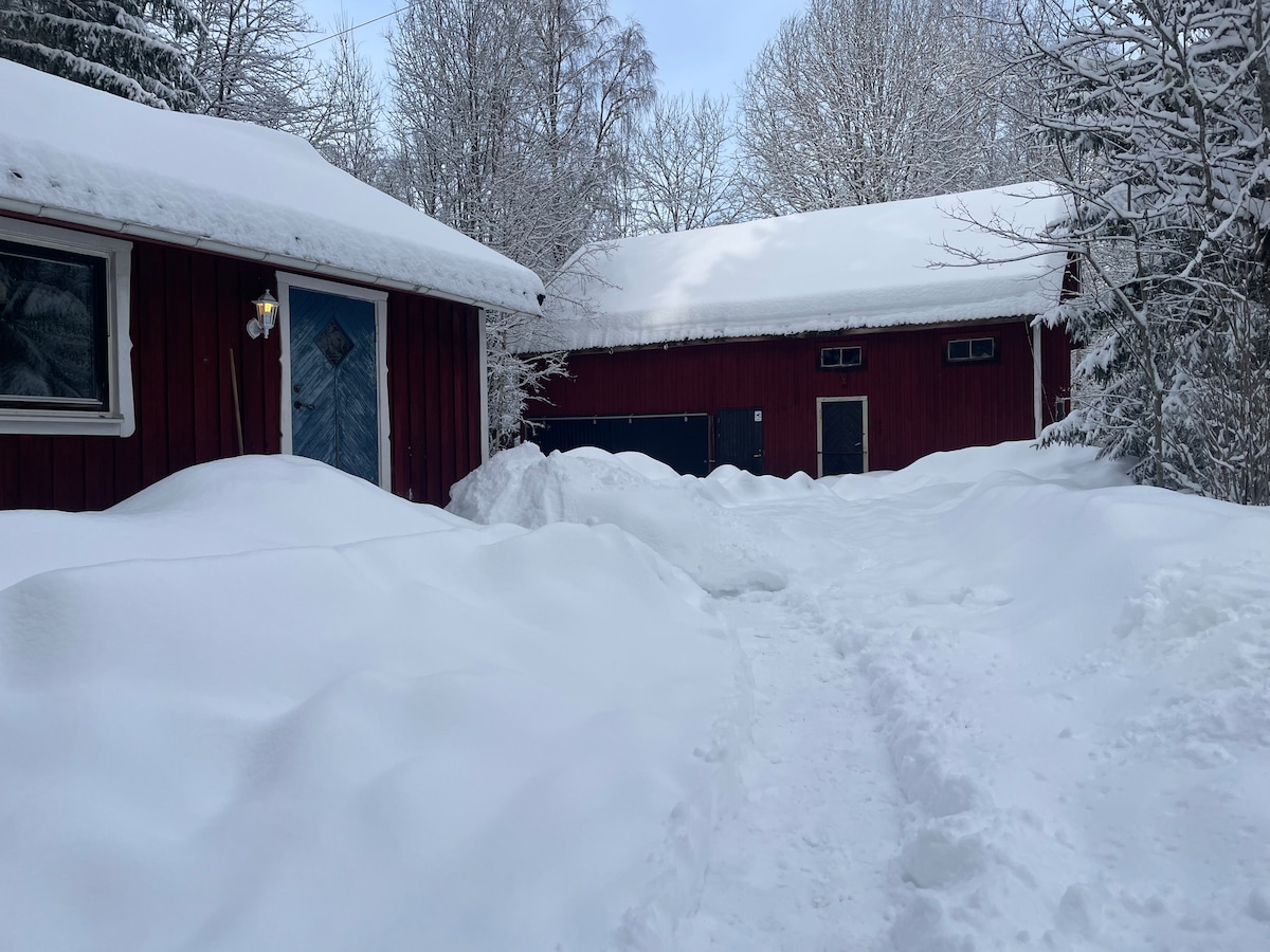 In een rustige omgeving met dicht bij de natuur kunt u in deze gezellige hut uw batterijen opladen. Nieuw gerenoveerde keuken en woonkamer in het najaar van 2024 's Avonds kun je genieten van de houtgestookte hottub (nieuw in de herfst van '25) waar de zintuigen ontspannen. Als je nog steeds bevroren bent, kun je in de barbecuehut springen en genieten van een sauna van de houtgestookte unit. Nieuw najaar -25 Oplaadbox voor elektrische auto's! Ica-winkel, tankstation 2 km Nabijheid van Finngårdar & wandelpaden evenals skiën & slalom Dicht bij bos ,natuur en paddenstoelen plukken