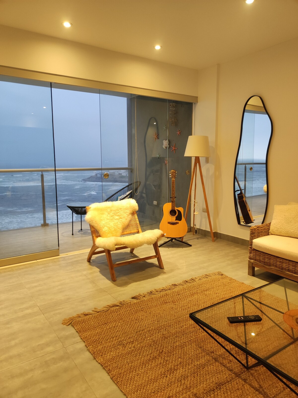 Grote open concept-afdeling. Gastvrij ingericht en volledig uitgerust, wifi en kabel. Je brengt een aantal onvergetelijke dagen door met familie of vrienden met een spectaculair uitzicht op een van de beste stranden, zeer dicht bij de stad Lima.