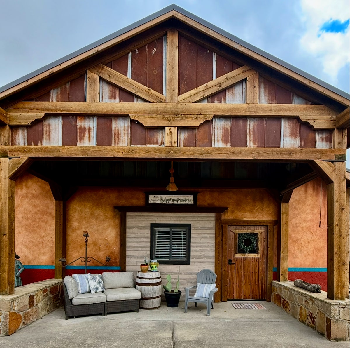 Nestled in wooded seclusion, Lonestar is our most private cabin at Ducky’s. The perfect getaway, this modern cabin lacks no comfort or convenience. Featuring a full kitchen, large walk in shower and comfy king beds. Enjoy the 20 acre property adorned with enormous pecan and live oak trees overlooking the vast scenic pasture and mini donkeys. Sip your coffee on front porch rockers and catch a glimpse of the deer. At the end of your day, wind down around the large fire pit!