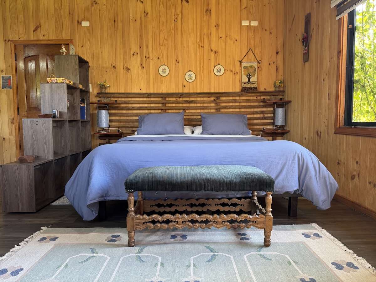 Relájate en esta escapada única y tranquila.Inmersa dentro del bosque nativo, como en un cuento, viviendo la naturaleza como una unidad podrás ver las estrellas y la luna en la noche desde tu cama… si el tiempo lo permite. Disfrutar de la lluvia y, en ocasiones, nieve en todo su esplendor! Cuenta con tinaja privada! La tinaja tiene valor aparte (no está incluido en el valor de la cabaña - costo $50.000 por vez que se utiliza, 2 usos por 90.000)