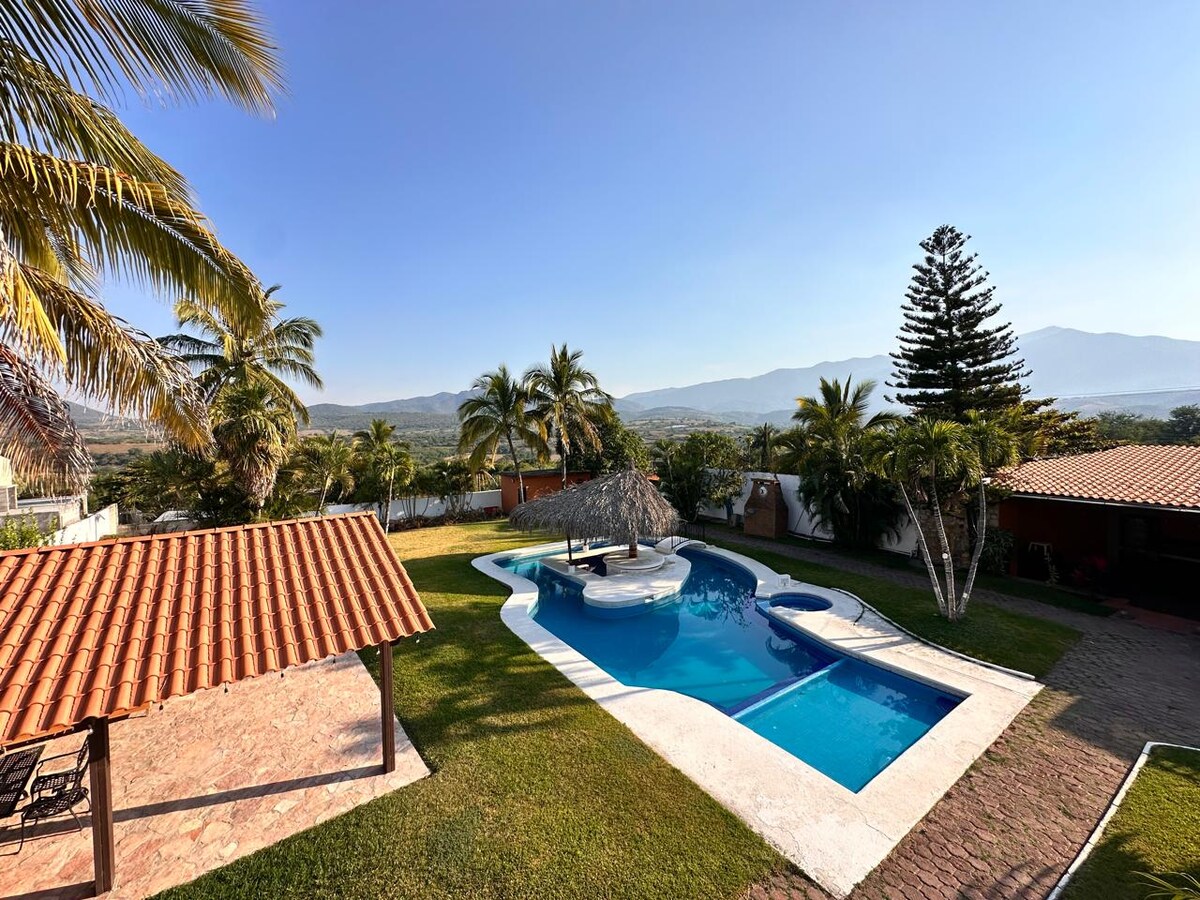 Dit huis biedt plaats aan 28 comfortabele mensen in 8 minuten naar het meer van Tequesquitengo, het is zeer centraal, de hele groep kan genieten van de gemakkelijke toegang tot alles, naast een ongelooflijk uitzicht op de skydiving die in 8 minuten naar het meer gaat