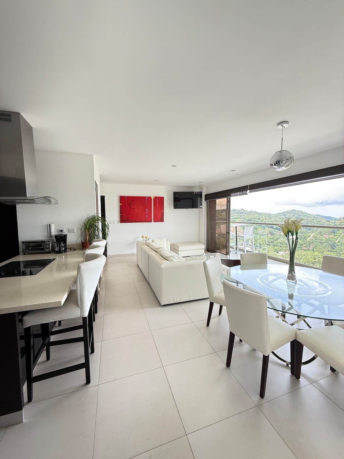 Descubre un lugar exclusivo y moderno en Santa Elena. Nuestro apartamento en el piso 9 de un edificio nuevo ofrece comodidad y ubicación estratégica, a pocos minutos de la Embajada de Estados Unidos, restaurantes, supermercados y hospitales. Consta de 2 habitaciones con aire acondicionado, sala amplia con vista, comedor para 6, cocina equipada, lavandería con secadora, internet de alta velocidad y parqueo para 2 autos. Ideal para estadías muy largas o pocos días.