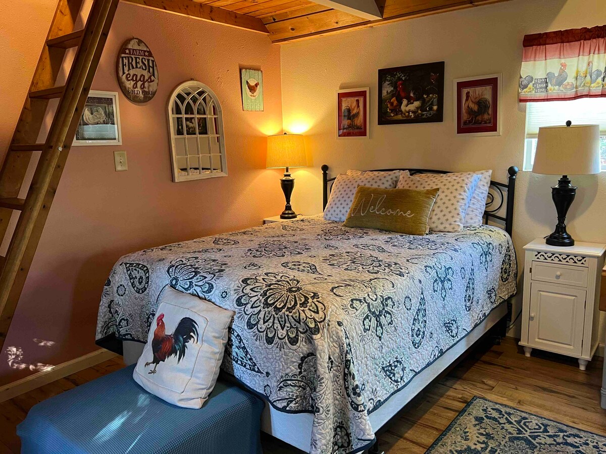Onlangs gerenoveerd huisje in een landelijke omgeving op 10 minuten van de stad. Leuk in Californië geïnspireerd design met werk van lokale ambachtslieden en kunstenaars. Voor diegenen die op zoek zijn naar een echte Humboldt-ervaring. Gelegen halverwege tussen Arcata en Blue Lake op 9 hectare grond waar eigenaren naast de deur wonen. Goed verlicht pad door de tuin naar een eigen toevluchtsoord. We bieden een prachtig uitzicht op omliggende sequoia 's en buurtpaarden. Geweldig voor diegenen die op zoek zijn naar buitenavontuur met alle comfort van thuis.