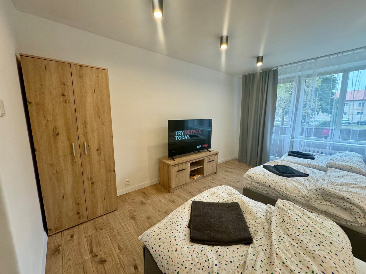 One room apartment with balcony on the 12th floor. 2 guests maximum. Not suitable for children. No pets. You can smoke on the balcony. 58" 4K TV, international tv channels. 5G Wi-Fi. Enjoy the city and river views from the balcony. Self check out. Free parking.