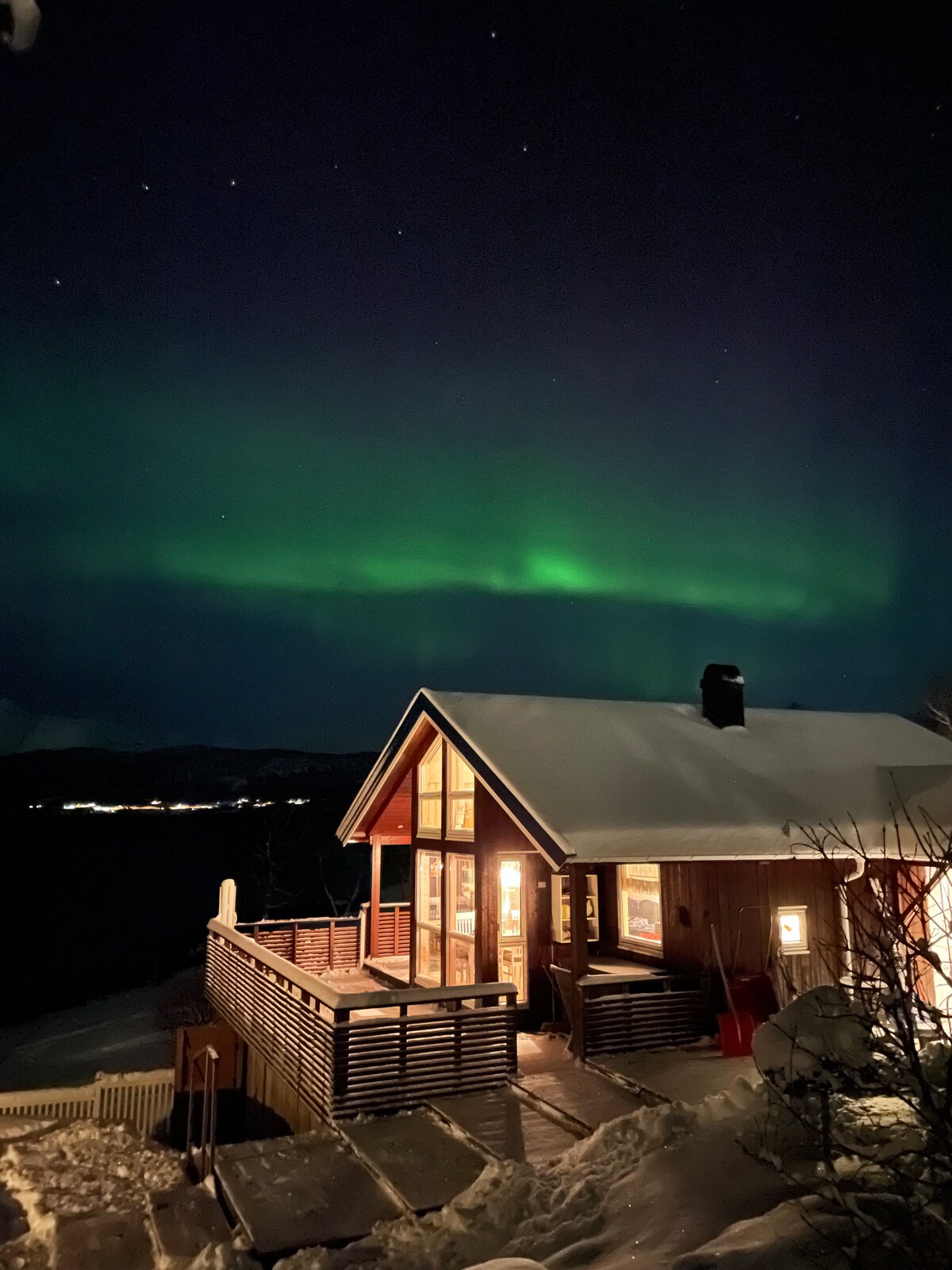 Stel je het noorderlicht voor dat in de winter over de hemel danst, of eindeloze middernachtzonavonden bij het vuur in de zomer. Onze hut ligt tussen ongerepte meren en dramatische toppen in ongerepte wildernis. Winter: skitouren, sneeuwschoenwandelen, noorderlicht. Zomer: wandelen, vissen, zwemmen, pure rust. 35 minuten van de luchthaven Harstad, 2,5 uur naar Lofoten. Toegang tot de weg, gratis parkeren. 10 minuten naar de winkel en de zee. Elektriciteit, kitchenette met kookplaat, buitentoilet, geen stromend water.