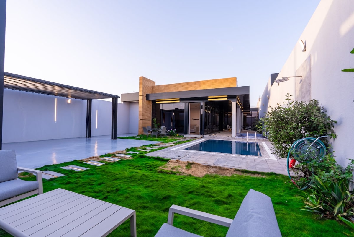 شاليه راقي يضم مسبح خاص، جلسات خارجية، مجلس أنيق، مطبخ متكامل، وغرف مريحة تناسب العائلة. يوفر لك أجواء هادئة وخصوصية تامة لقضاء أمتع الأوقات بعيدًا عن الضوضاء. جديد