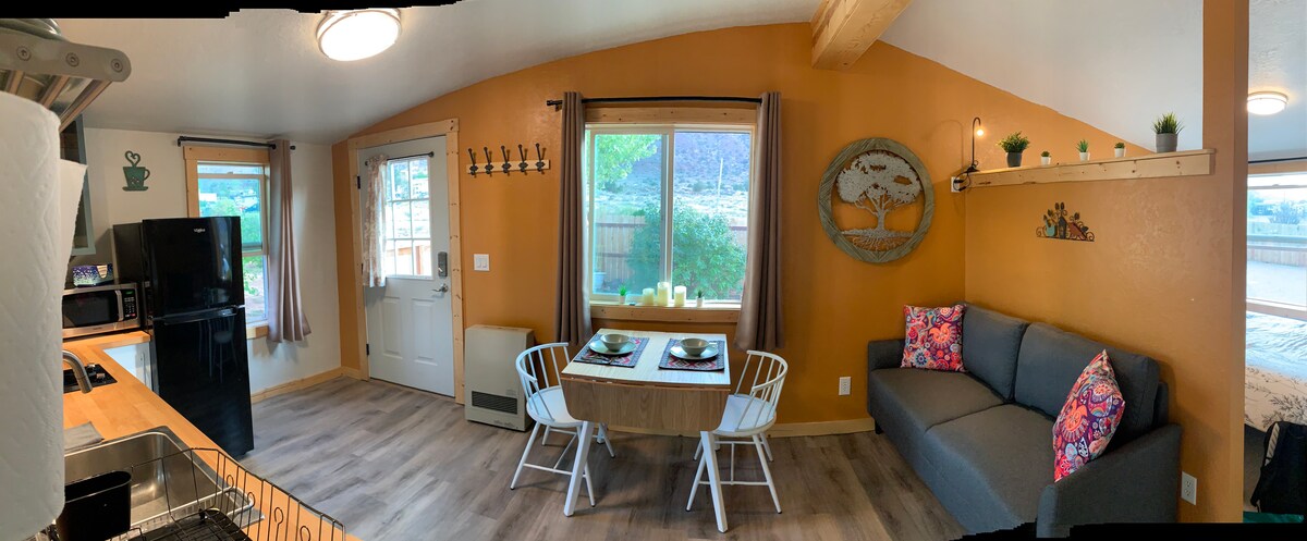Escape the hotel hustle- indulge in the luxury of your own private cottage! Cleanliness is our priority, offering you a pristine space during your Moab stay. Enjoy cozy beds, fresh linens, and all the amenities for your desert adventure. For comfort and affordability, your ideal space awaits with us! Join our community of repeat guests and explore our enduringly positive reviews! We ask that you please fully read our listing description when booking, (NOTE THE LOFT CEILING HEIGHT).