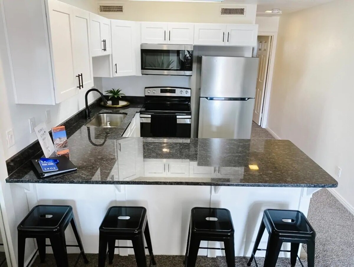 2 BR/1BA Lower Level Condo met kingsize bed, een queensize slaapbank en een tweepersoonsbed met een uitschuifbaar bed eronder. VERSE NIEUWE VERBOUWING. In Sports Village met fantastische voorzieningen - 2 prachtige zwembaden (volwassen zwembad), 2 bubbelbaden, peuterbad, sjoelbak, tennis, augurken, buitenkookruimte, buitenbasketbal, clubhuis met speelkamer, enz. Dicht bij zwembaden, clubhuis, enz. en is ook in de buurt van winkels, op korte rijafstand van de snelweg I-15, restaurants, fietspaden, enz.