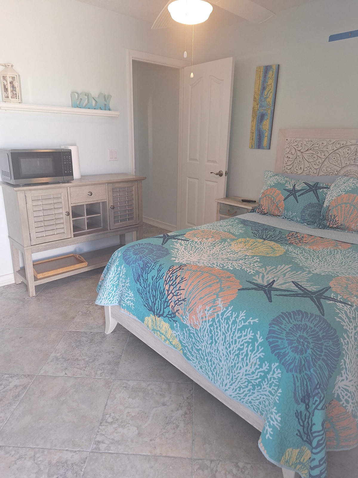 Welkom in onze gezellige efficiëntie op South Hutchinson Island, Florida! Onze slaapkamer is perfect voor singles of koppels, met een queensize Murphy-bed en een eigen ingang op de begane grond. Een inductiekookplaat, convectieoven, full-size koelkast, smart-tv en een complete badkamer. Gelegen in een vriendelijke buurt, liggen we dicht bij stranden, steigers, restaurants en het historische centrum. Kom bij ons logeren en geniet van alles wat de Treasure Coast te bieden heeft!