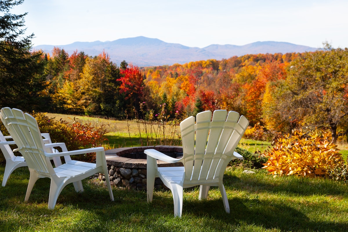 Charmante suite met een slaapkamer hoog op een heuvel met een van de beste uitzichten in de provincie. Zeer privéomgeving aan een landweg. Je hebt de hele bovenste verdieping voor jezelf, inclusief een slaapkamer, open keuken/eetkamer/woonruimte, een kledingkast, badkamer compleet met 2-persoons jet tub en een afgesloten veranda. Loop rond in ons grote pand of gebruik het als uw uitvalbasis voor uw Vermont Adventure. We bevinden ons in het hart van het noorden van Vermont, een bescheiden rit van de beste dingen om te zien in de omgeving!