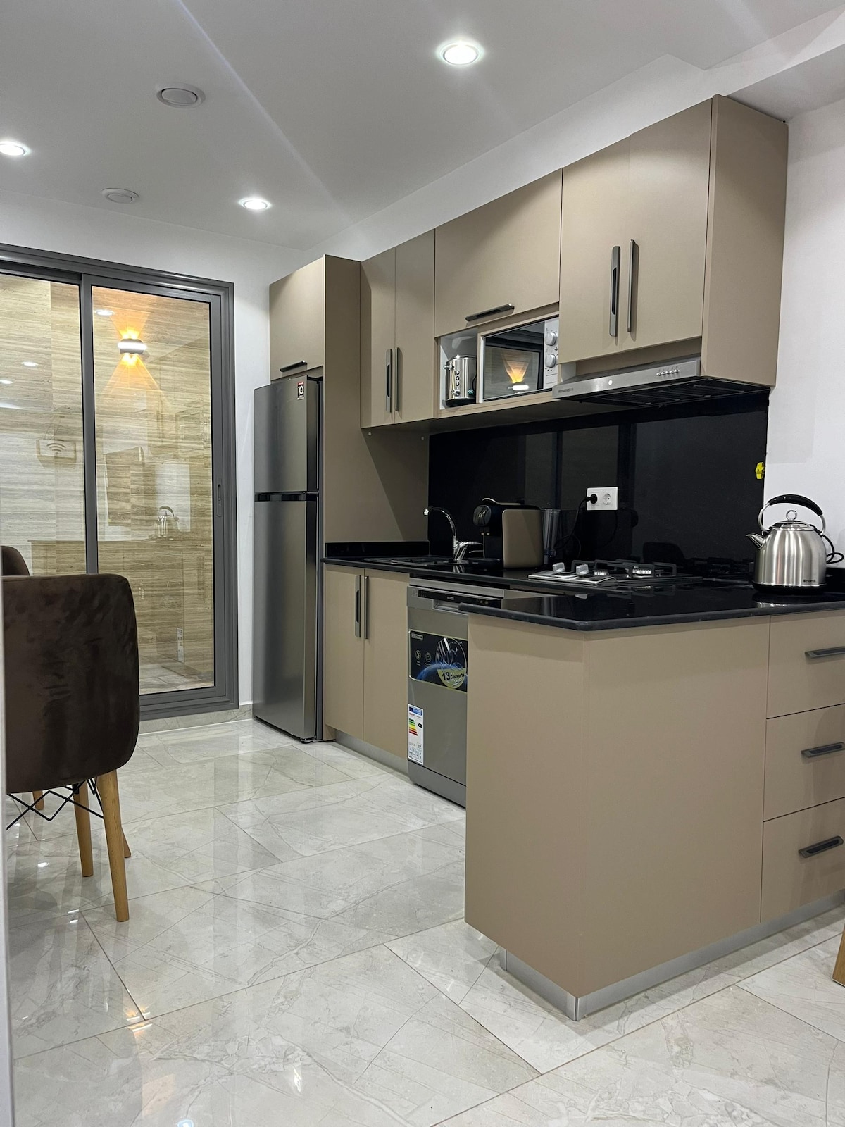 Détendez-vous dans ce logement calme et élégant, d’une superficie de 50m2 en open spaces, Rez de chaussée avec accès indépendant et sans vis à vis, ensoleillé et aéré, dans une petite résidence immobilière privée privée, place parking réservée, entièrement meublé et équipé, chauffage centrale, climatiseurs, cuisine équipée, lave linge, lave-vaisselle, micro-ondes, frigidaire, citerne, wifi, parabole, endroit calme et sécurisé, commerces à proximité, accès rapide autoroute.