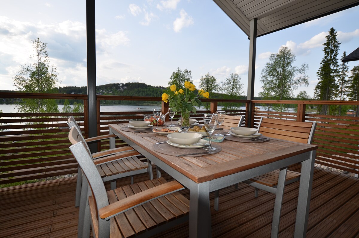 Blokhut met uitzicht op het meer. Voorzien van onder andere een privésauna, één slaapkamer en een slaapgedeelte buiten de hoofdcabine. De woonkamer en keuken zijn gecombineerd. In de voortuin is een barbecueplaats aanwezig. Watertoilet. Douche- en kraanwater gefilterd uit het meer. Verswaterfilter. Een boot is beschikbaar voor gratis gebruik. Activiteiten: wildtaiga site. Bubbelbad / extra vergoeding 90 €.