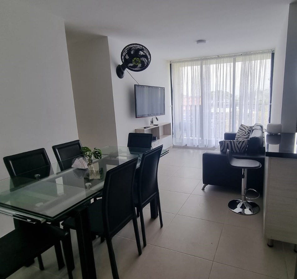 ¡Bienvenido a tu hogar lejos de casa! Este moderno apartamento de 3 habitaciones, ideal para hasta 6 personas, tiene ventiladores en todas las habitaciones, sala, comedor y cocina totalmente equipados. Disfruta de WiFi, Netflix, parqueadero gratuito y zona de lavado equipada. Cerca del Parque Deportivo, Aeropuerto, almacenes como Makro, Éxito, Homecenter y a 20 minutos de Playa Hawái. El conjunto cuenta con ascensores, parque para mascotas y niños, piscina, jacuzzi y canchas.