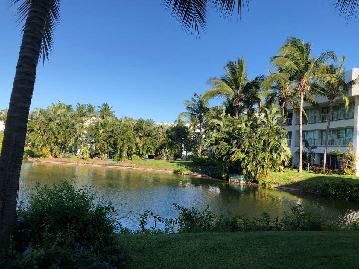 Uitgerust appartement voor 6 in Mayan Lakes condo (Vidanta) alles werkt Zwembad: ligbedden in het water, plonsbad en gebieden om te zonnebaden, direct voor de toren. Gratis clubhuis: tennisbanen, paddle en pickle ball, fitnessruimte, stoombad, een ander zwembad, restaurant Met de aankoop van armbanden bij de receptie van het Mayan hotel heb je toegang tot het hotelstrand, het Mayan Palace-zwembad en het waterpark voor kinderen🌴☀️. 🏡 Twee slaapkamers 🛁 2 badkamers aire ac Appartement met groene zones, meer (kajak), wandelen