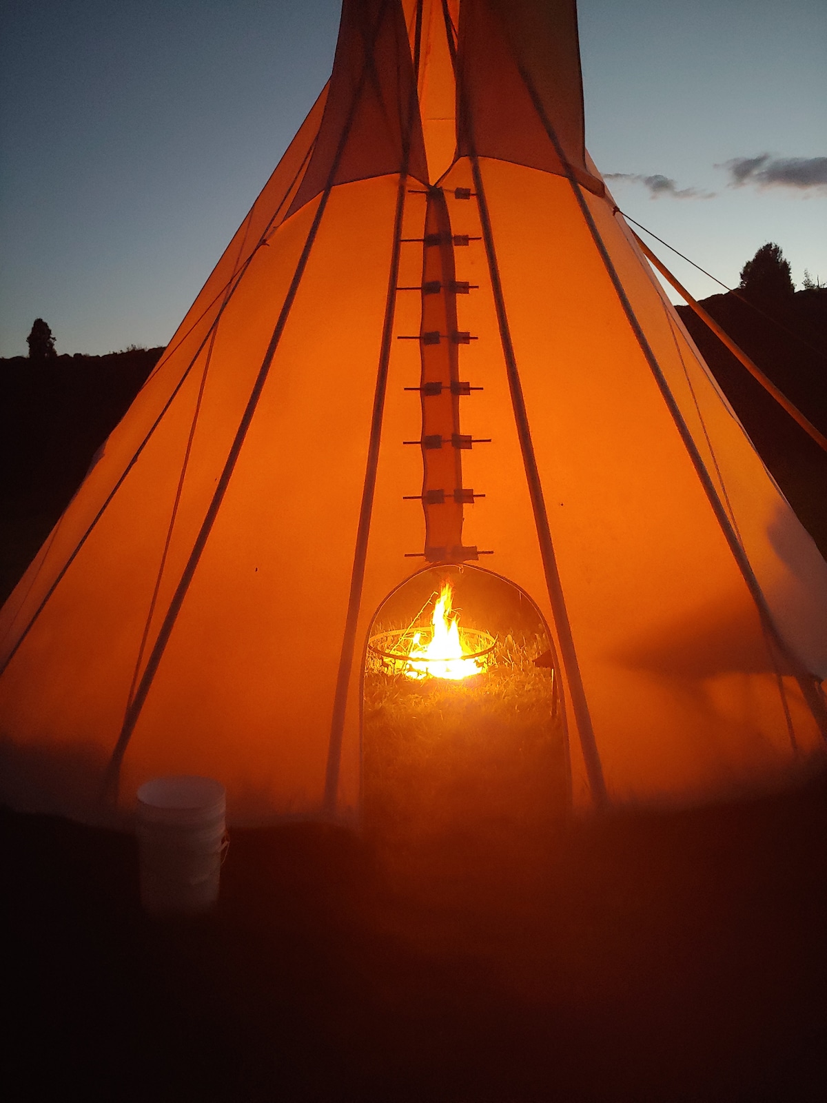 Een Teton zonsopgang wacht op je in deze rustieke accommodatie. De tipi ligt op een gedeeld terrein met de eigenaar en andere campers. De grote hoeveelheid ruimte en het uitzicht op de Grand Tetons is geweldig. Er zijn kinderbedjes en slaapzakken in de tipi met een porta-potje net buiten. Dit is een zeer rustieke ervaring in het hart van de bergen met een echte Native Tipi als schuilplaats.