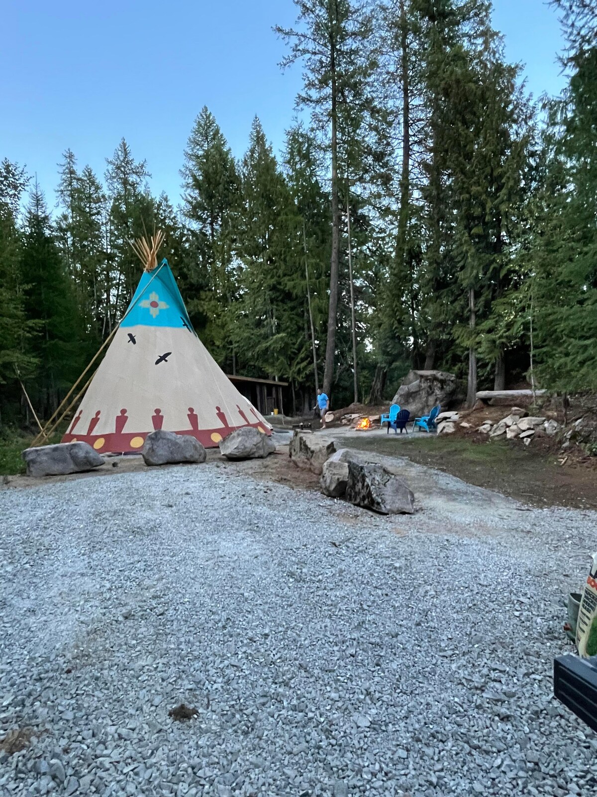 We verwelkomen je om het natuurlijke landschap te ervaren in de majestueuze bergen van Napels, Idaho. The Raven 's Nest Teepee (24") Gebouwd op een betonnen vloer, met 1/2 bad, elektriciteit, kingsize bed, futon, kinderbed en koffiebar. De vuurplaats brandt tegen de perfecte verhalende rots en ontspannende geluiden van vogels op de berghelling van Selkirk. Teepee-accommodatie beschikt over een eigen buitendouche, spoeltoilet en een overdekte buitenkeuken/eetkamer met gasbarbecue. Huisdiervriendelijk. (Geen trailers)