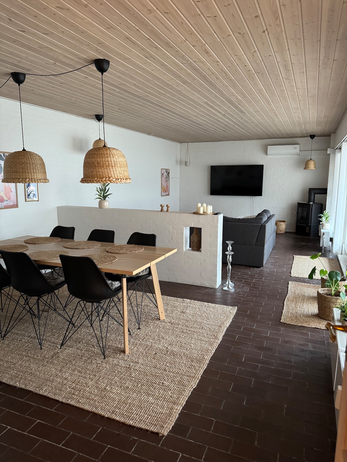 70 m2 echte vakantiehuis-sfeer, 50 m2 houten terras met middag- en avondzon. 4-6 slaapplaatsen in 3 slaapkamers: 1 tweepersoonsbed en 2 stuks 3/4 bedden. Geschikt voor 4 personen, maar er kunnen 6 personen in als u dicht bij elkaar slaapt. Dekbedden, dekbedovertrekken, handdoeken zijn inbegrepen. Volledig uitgeruste keuken, vaatwasser, wifi, smart-tv, houtkachel. Wasmachine/droger. Rustige buurt. Toegang tot de bootbrug bij het meer van Sund, direct tegenover de draaiplek. 5 min. naar de supermarkt. 15 min. naar Herning.