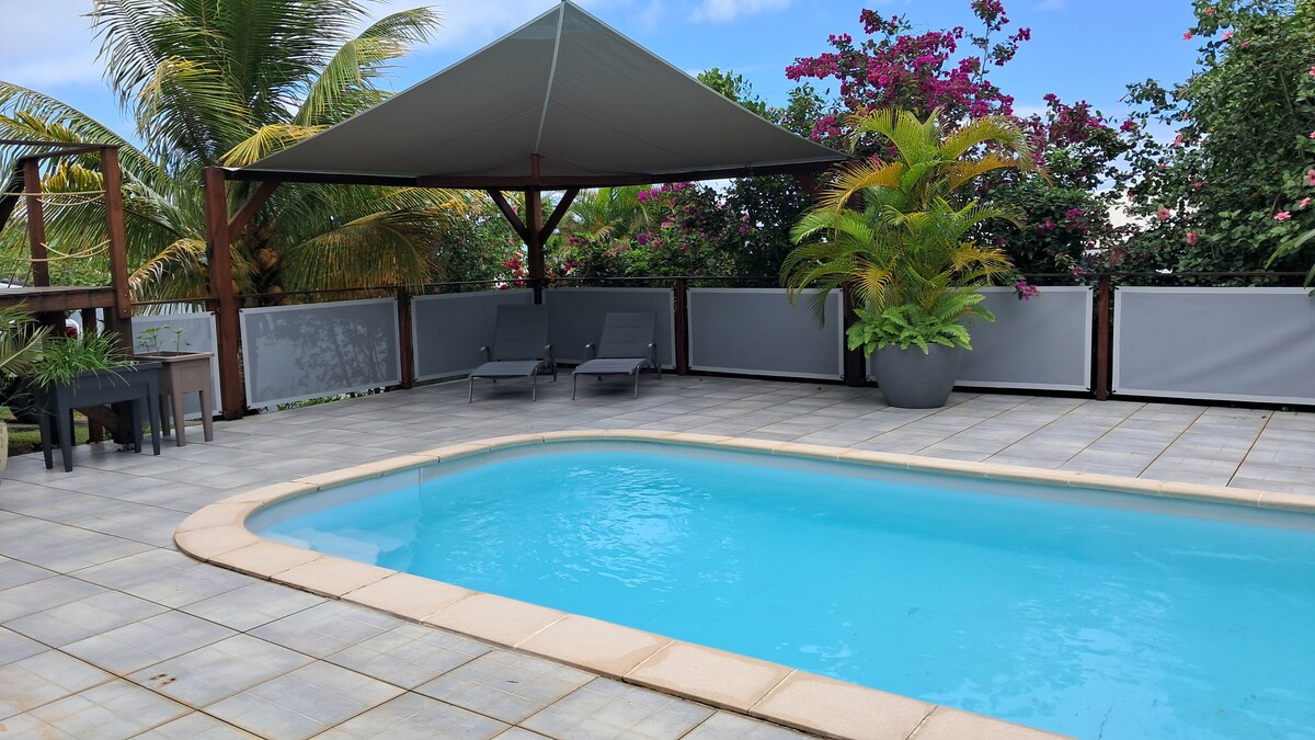 Belle maison créole, dans un cadre agréable, entourée de végétation fruitée et fleurie,. Bordée d'une petite route de campagne et de la rivière, à 5 minutes de toutes commodités. Vous serez aussi ravi de vous délasser dans le jacuzzi naturel de la rivière, juste à quelques minutes du bungalow, et de laisser partir les soucis de la vie au fil de l eau 💦 Un panier de bienvenue de fruits du pays vous est offert. Du bungalow vous avezà proximité les sentiers de découverte de la vallée 🌺