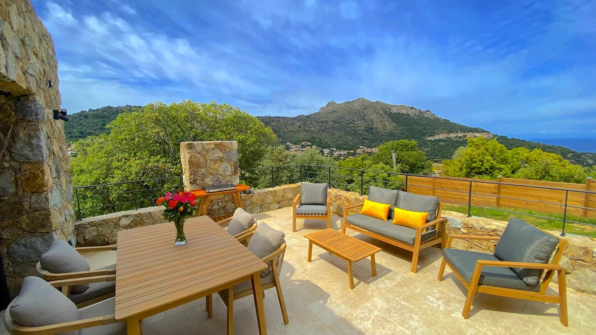 U mulinu di Gradacce#: deze oude molen is volledig gerenoveerd en op zichzelf staand op een afgelegen site (gevangen bron, fotovoltaïsche panelen) geeft je absolute rust terwijl je dicht bij de stranden en de belangrijkste toeristische bezienswaardigheden van Balagne blijft. Gelegen op een heuvel met uitzicht op een uitzonderlijk uitzicht op een perceel van 5 hectare beplant met olijf- en fruitbomen tot je beschikking, is deze plek een echte oase van rust om weer in contact te komen met de natuur.