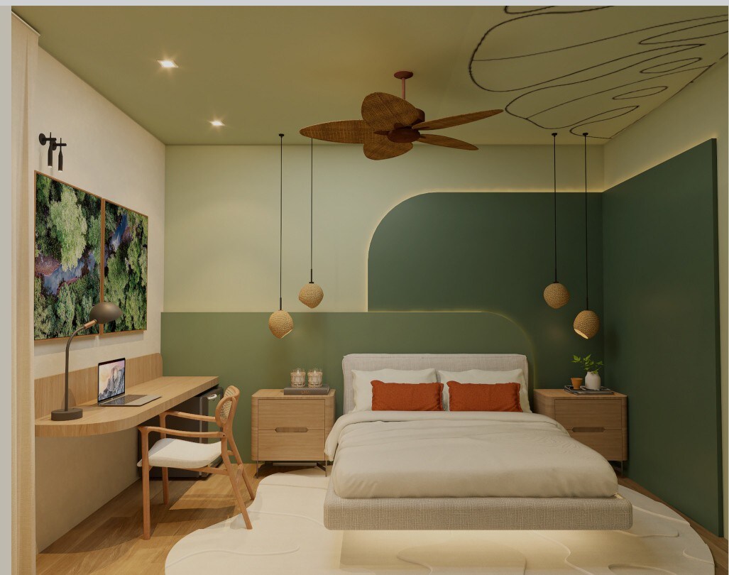 De Mico-Leão-Dourado-kamer brengt hulde aan het iconische gouden aapje van Brazilië. Intiem en licht, geschikt voor maximaal twee personen in een warme omgeving, ingericht met zonnige en natuurlijke tinten. Met een comfortabel bed en natuurlijke ventilatie biedt het een rustig verblijf in het hart van de natuur. Slechts een korte wandeling naar het strand van Baía do Sol, het is een ideale cocon om te rusten en weer in contact te komen met de essentiële dingen.