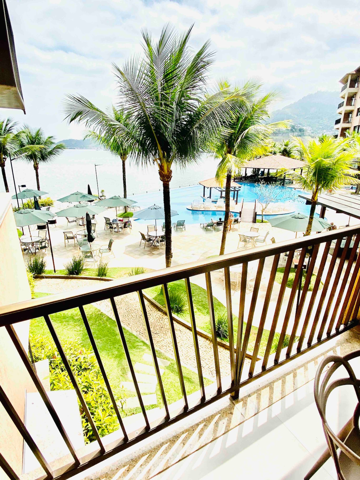 De structuur van een resort met de beveiliging van een omheind condo (volledige naam en identiteit van alle gasten moeten worden opgegeven voor toegang), 128 km van Rio de Janeiro. Je loopt naar het privéstrand en het oceaanzwembad. Jachthaven, club, bar, restaurants, fitnessruimte, spa, sauna, tennisbanen en voetbal. Appartement met 2 comfortabele kamers (dubbele suite met hangmat op het balkon en kamer met 2 eenpersoonsbedden, draagbare wieg), volledige keuken. Schitterende uitzicht op Ilha Grande!