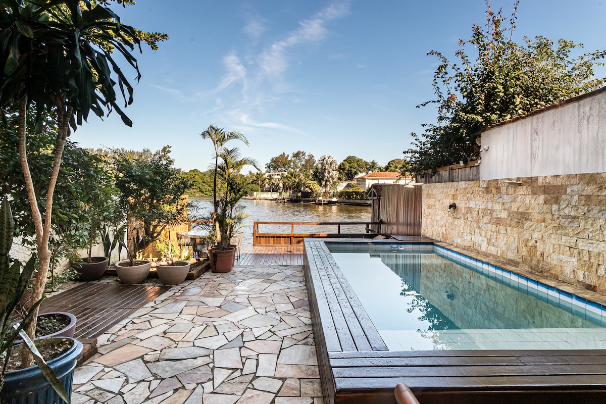 Voor diegenen die op zoek zijn naar een ervaring en niet alleen een advertentie. Laad de energieën van rust en natuur op in het hart van Barra, aan de rand van ons Venetië Carioca! Mini-resorthuis met eigen pier, Uruguayaanse parrilla, kunststeen ofurô en vloerbrand! Zonder afbreuk te doen aan fysieke of virtuele connectiviteit! Goed internet en 5 minuten met de boot-taxi van de metro, markt, winkels en restaurants. Tal van ervaringen thuis – jetskiverhuur, varen en stand-up