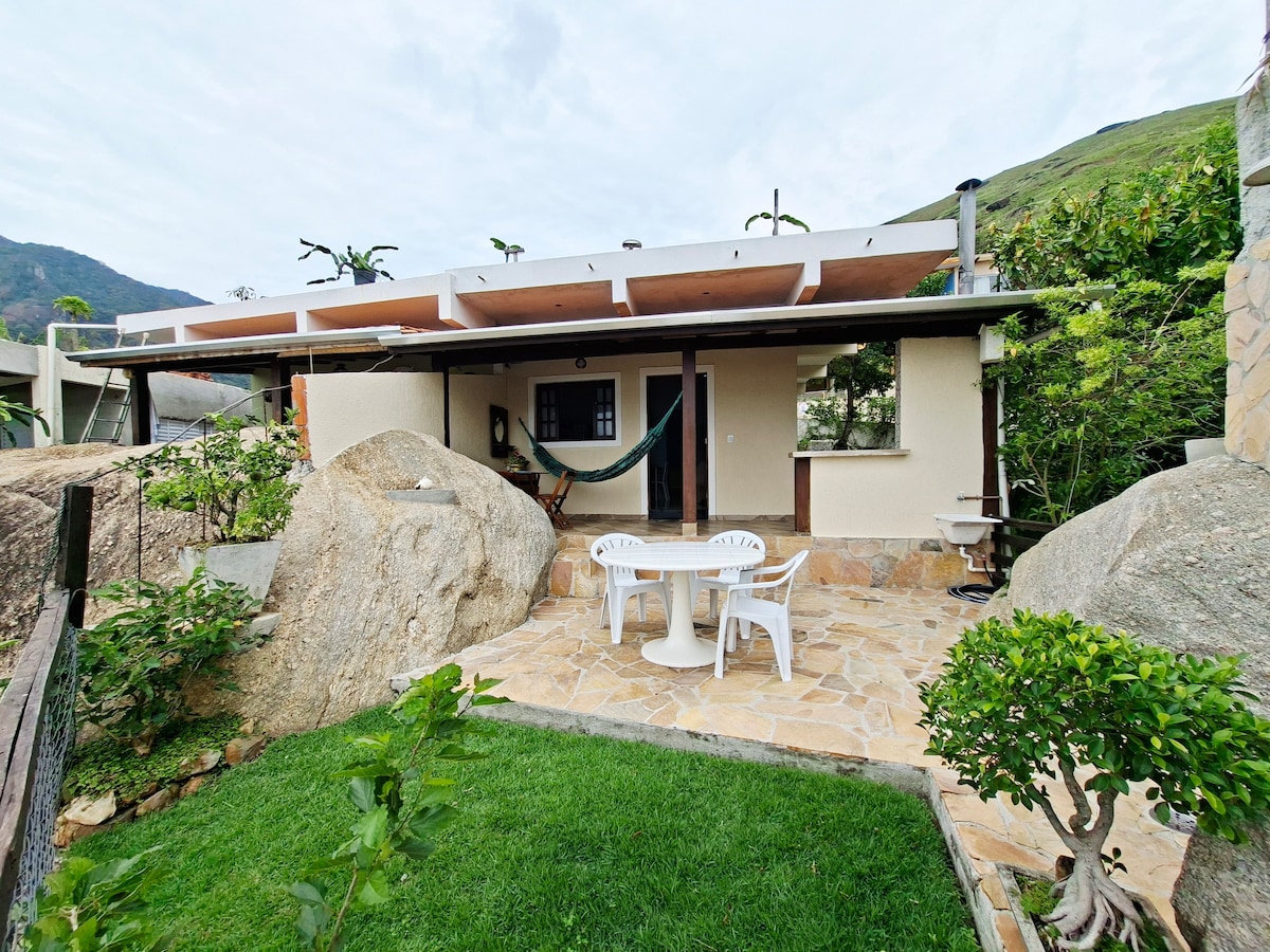 Rustiek en gezellig huis in Morro do Canta Galo van waaruit je een paradijselijk uitzicht op de zee hebt. Wakker worden en naar de zee kijken zonder het hoofd van het kussen op te heffen is onbetaalbaar. En geen borrachudos! Er zijn er veel op het eiland, maar ze komen nauwelijks in het huis. Het is comfortabel voor 2 personen, nog een is mogelijk. De badkamer is groot en de keuken heeft genoeg om maaltijden te bereiden. De woonkamer met stoffen banken en het houten terras maken de gezelligheid compleet. Het is niet geïsoleerd, maar het is exclusief voor iedereen die erin zit.