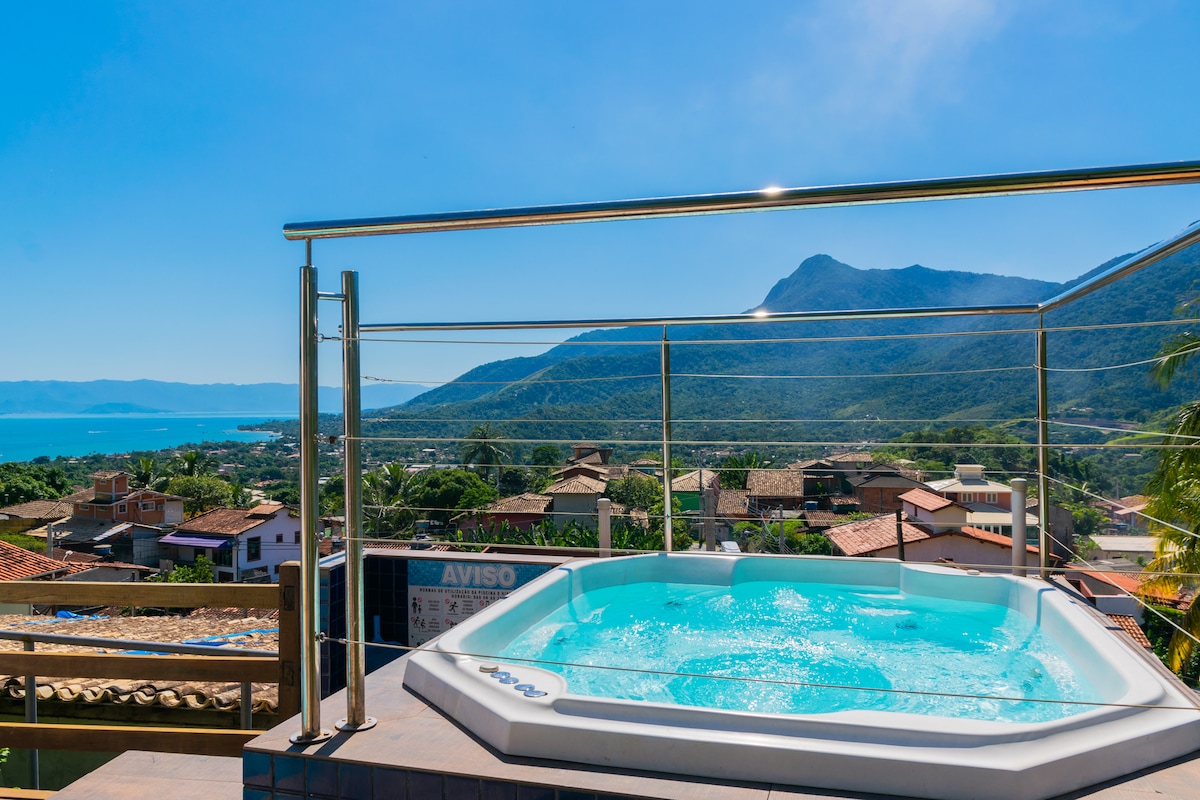 Charmant huis in koloniale stijl met de moderniteiten van het leven van vandaag aan de voet van de bergen, SUPERSNEL internet, 3 slaapkamers met airconditioning, 3 badkamers, wasruimte en garage. Barbecueplaats, gemeenschappelijk recreatiegebied met zwembad, enz. TOTALE ONTSPANNING. Condominium met 24-uursbeveiliging Dicht bij het winkelcentrum, Stranden, watervallen, ecologische rondleidingen en dag- en nachtattracties. We noemen onszelf Ilhabela Paradise. BELANGRIJK: het is verplicht om een NEGATIEVE COVID-test op de VEERBOOT te presenteren.