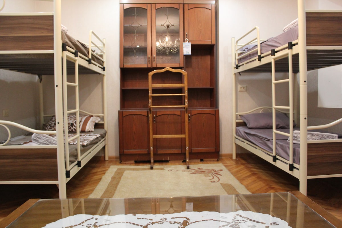 Ontspannen in een stijlvolle en gezellige plek, kijken naar gouden zonsondergangen, groene heuvels en witpaarse Kaukasus zijn wat we geweldig vinden aan deze plek en hopelijk voel je je hier ook geweldig. - 2 minuten van boodschappen, - 5 minuten van het centrale park, - 10 minuten van Be-Healthy, restaurant-bar van Tskaltubo Plaza Hotel, bank. Het appartement bevindt zich op de 5e verdieping. Geen lift, geweldige manier om in vorm te blijven! Het gebouw is uit het soviet-tijdperk en ziet eruit als een oma: gerimpeld van buiten, warm en heerlijk van binnen❤️
