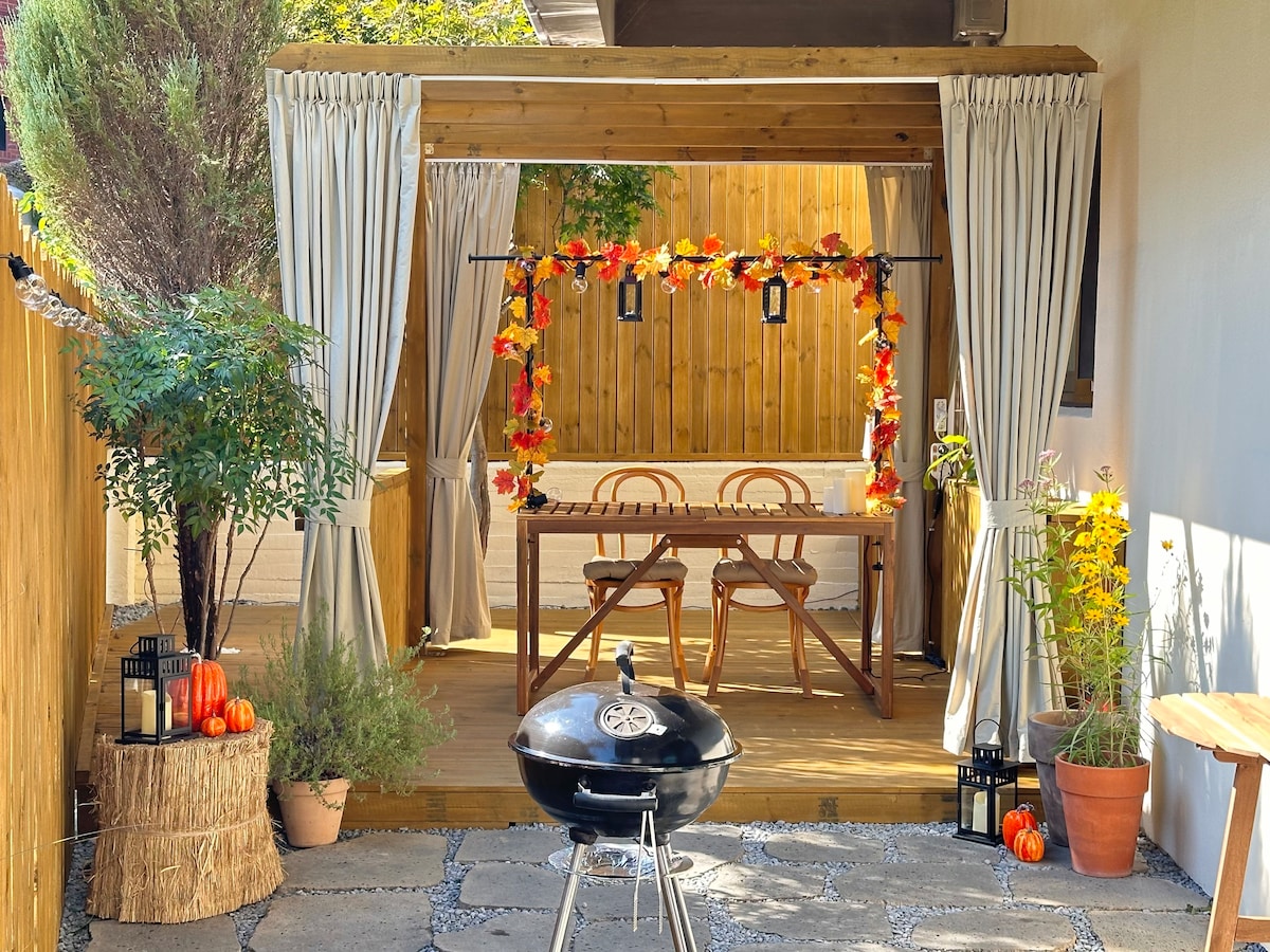 [Garden of the House] Barbecue/ bordspel. Landelijk huis met een warm gevoel