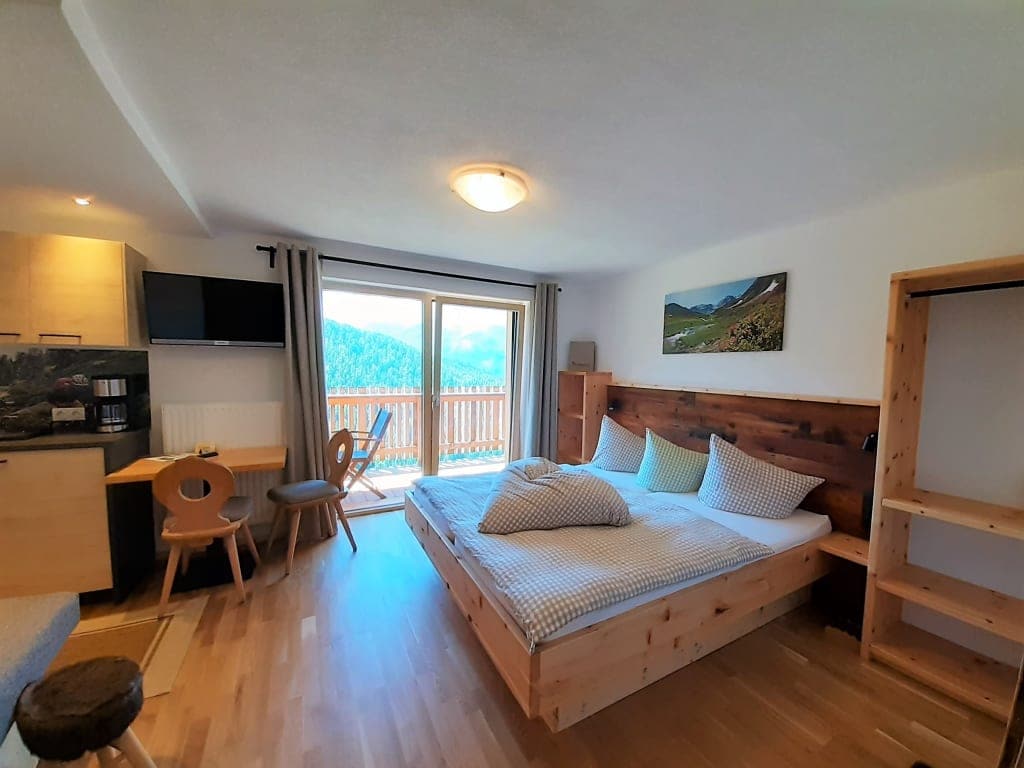Studio met balkon, sauna en spectaculair uitzicht op de bergen