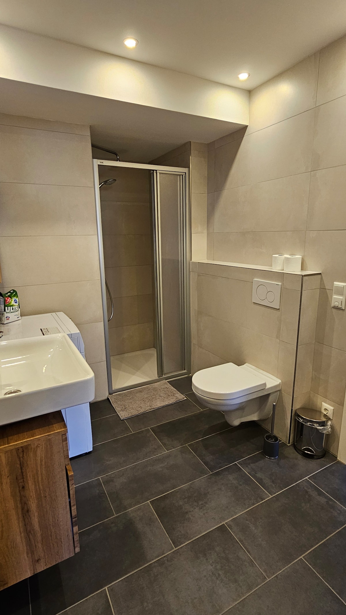 De stijlvolle inrichting van deze moderne accommodatie laat niets te wensen over voor de gasten. Omdat de onlangs voltooide 45 m ² schoonfamilie, onlangs met vloerverwarming, alle voorzieningen heeft voor een paar rustige dagen weg in de Beierse dorpsidylle. Het hoogtepunt van het appartement is de moderne badkamer met regendouche en het uitzicht op de grote tuin, die op afspraak kan worden gebruikt. Daar staat vaak een Berner Sennenhond.